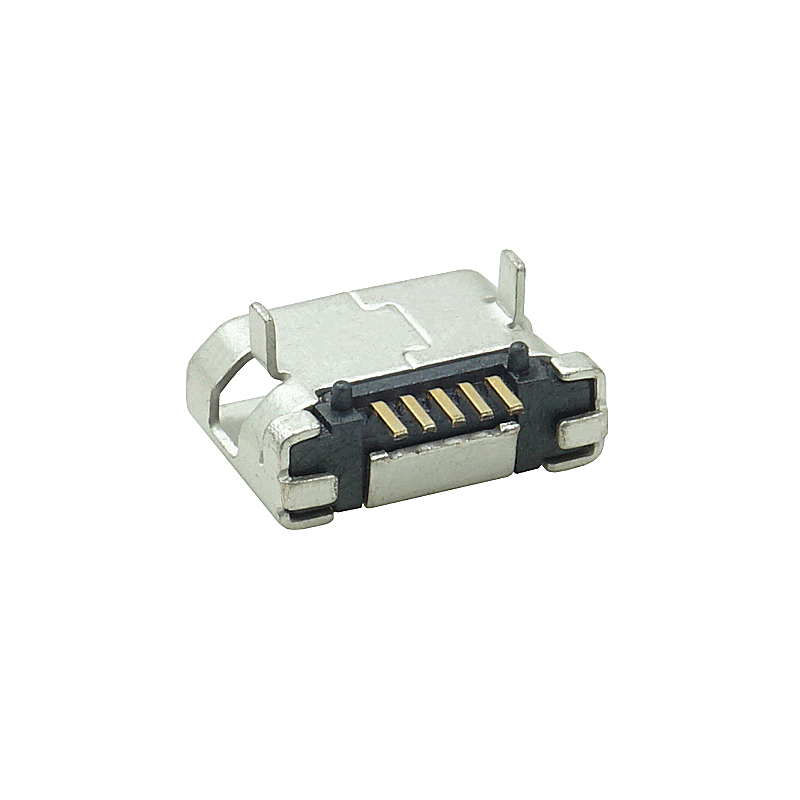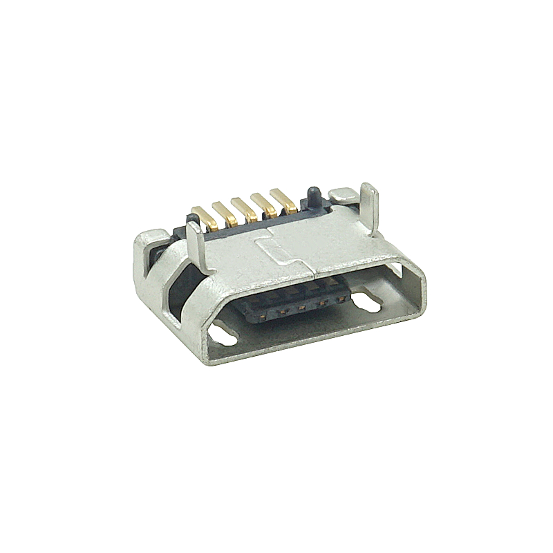 Micro USB 5s Type B with solder pins, board 5.9, with posts but no guides, extended by 0.75, pin length 1.25, 1