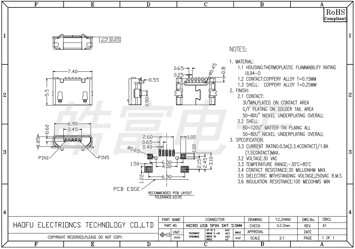 MICRO USB 5PIN SMT 5.5MM 1
