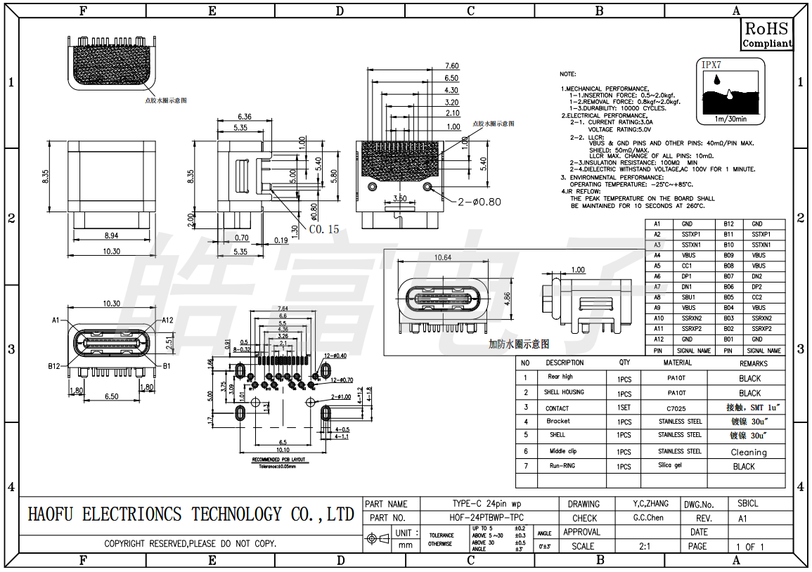 TYPE C 24PIN Waterproof with Waterproof Ring