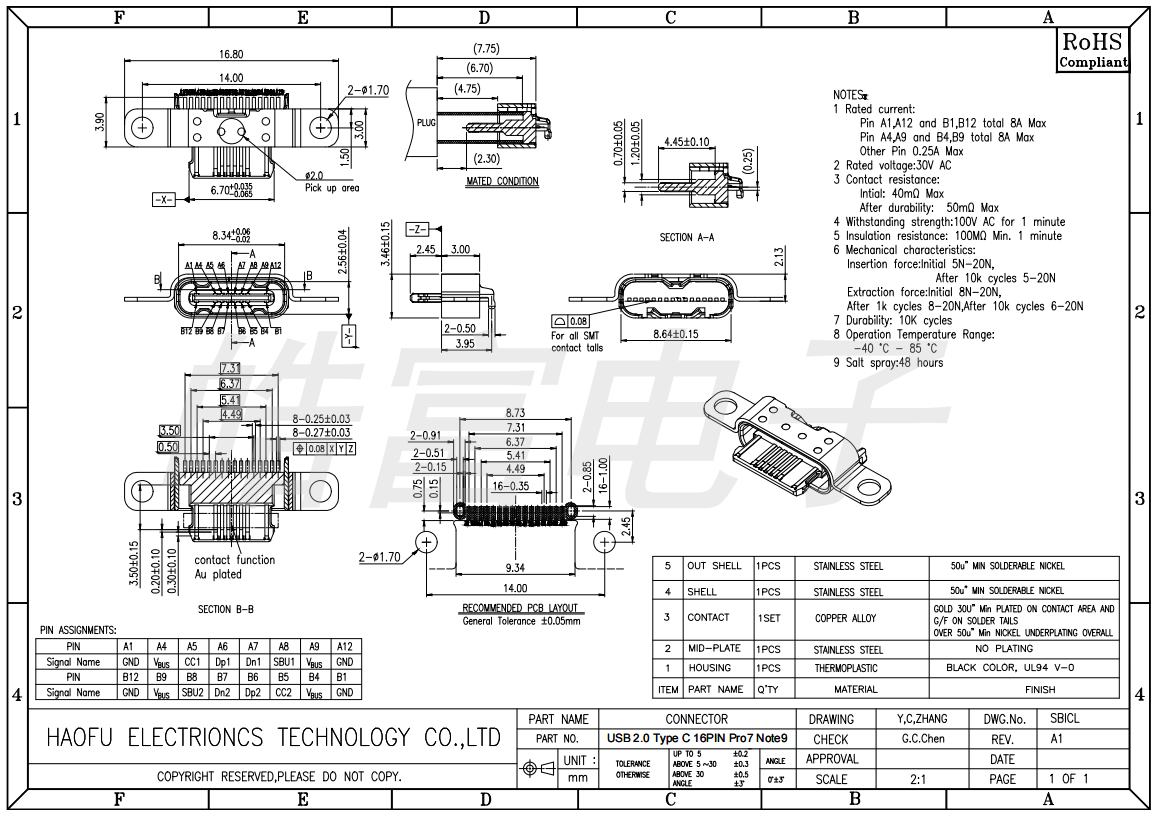 USB 2.0 Type C 16PIN Pro7 Note9 1