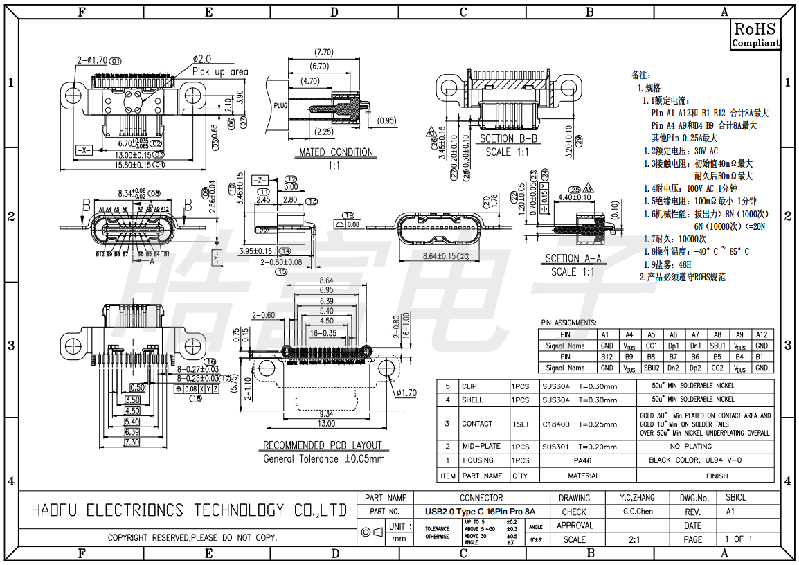USB2.0 Type C 16Pin Pro 8A 1