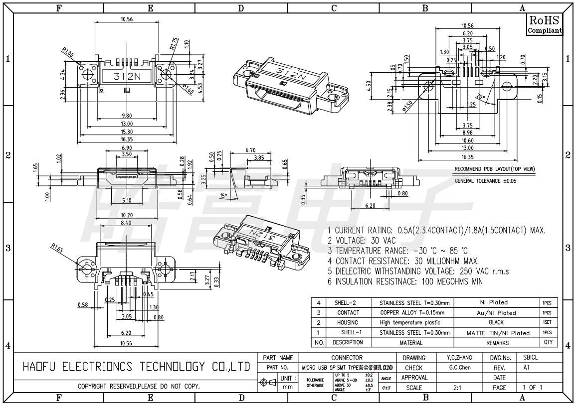 MICRO USB 5P SMT TYPE Dustproof Tape Lock Hole (X20) 1