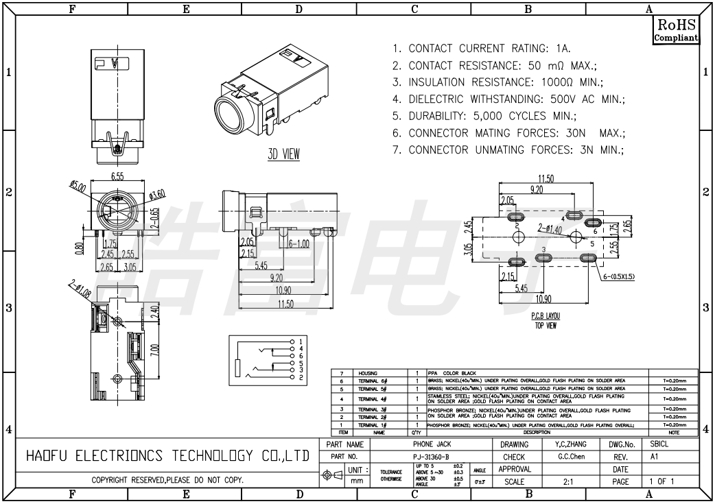 Headphone jack PJ35A063-F06G1 JR-B