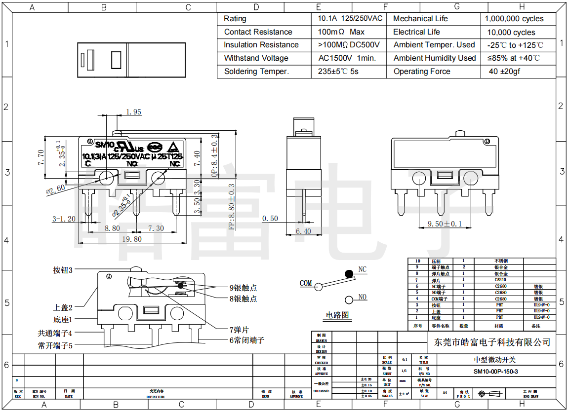 Your position  Home -> Products  ->  Micro switch  ->  SM10-00P-150-3
