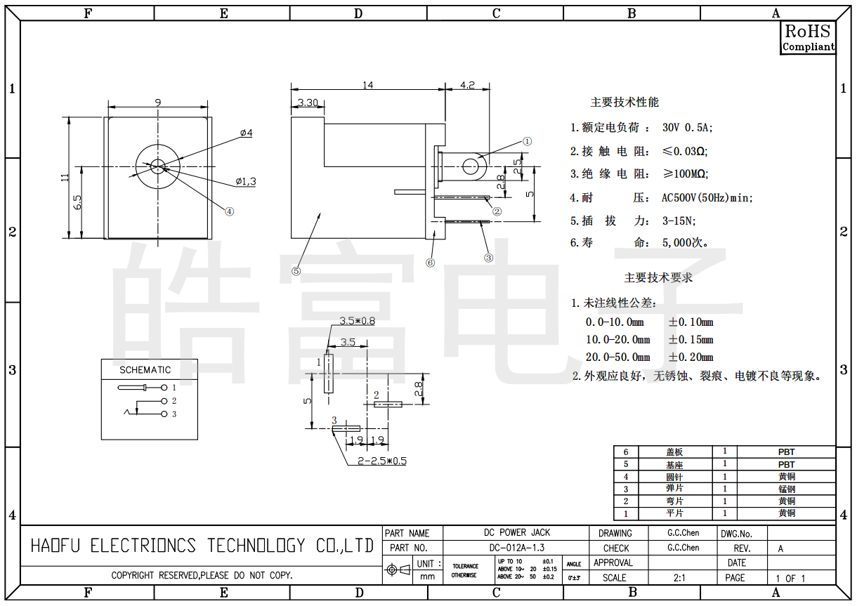 Your position  Home -> Products  ->  DC socket  ->  DC-012A-1.3 Small hole