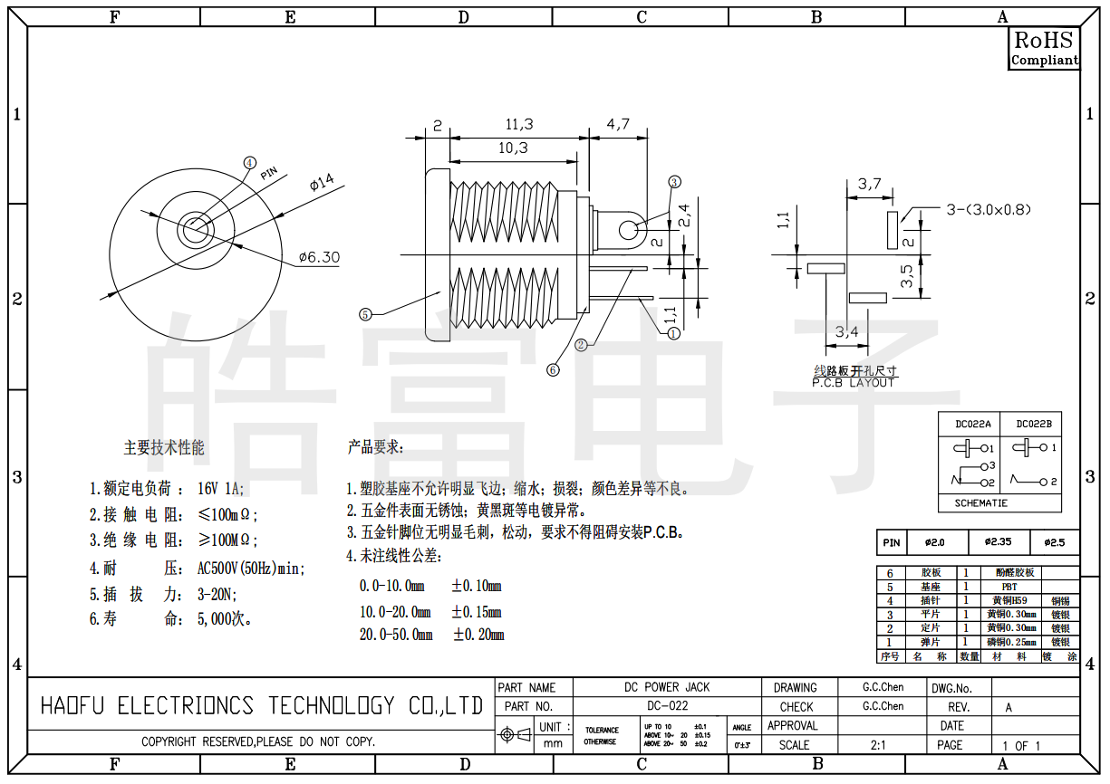 Your position  Home -> Products  ->  DC socket  ->  DC-022-2.5