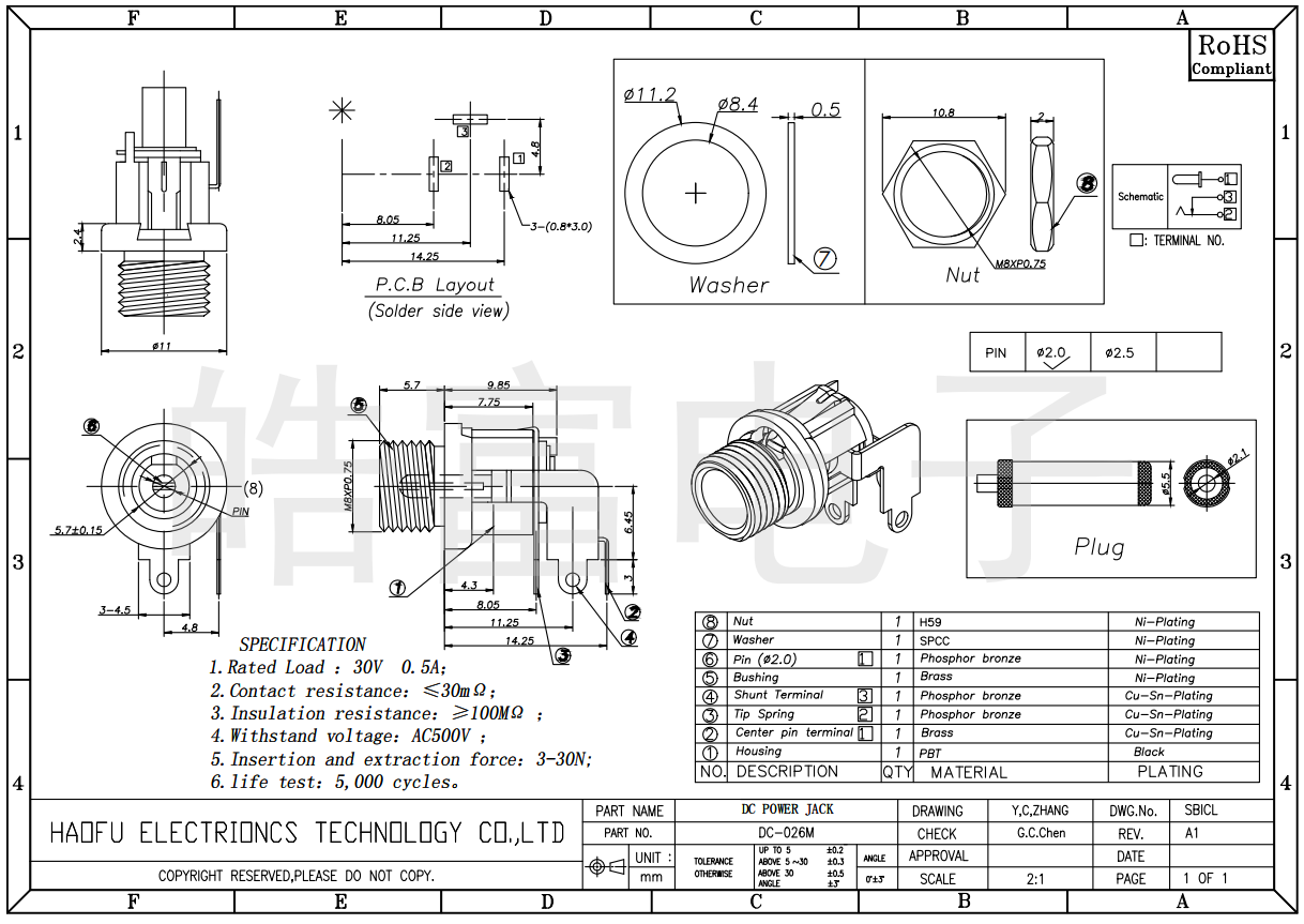 Your position  Home -> Products  ->  DC socket  ->  DC-026M-2.0 5.7 High