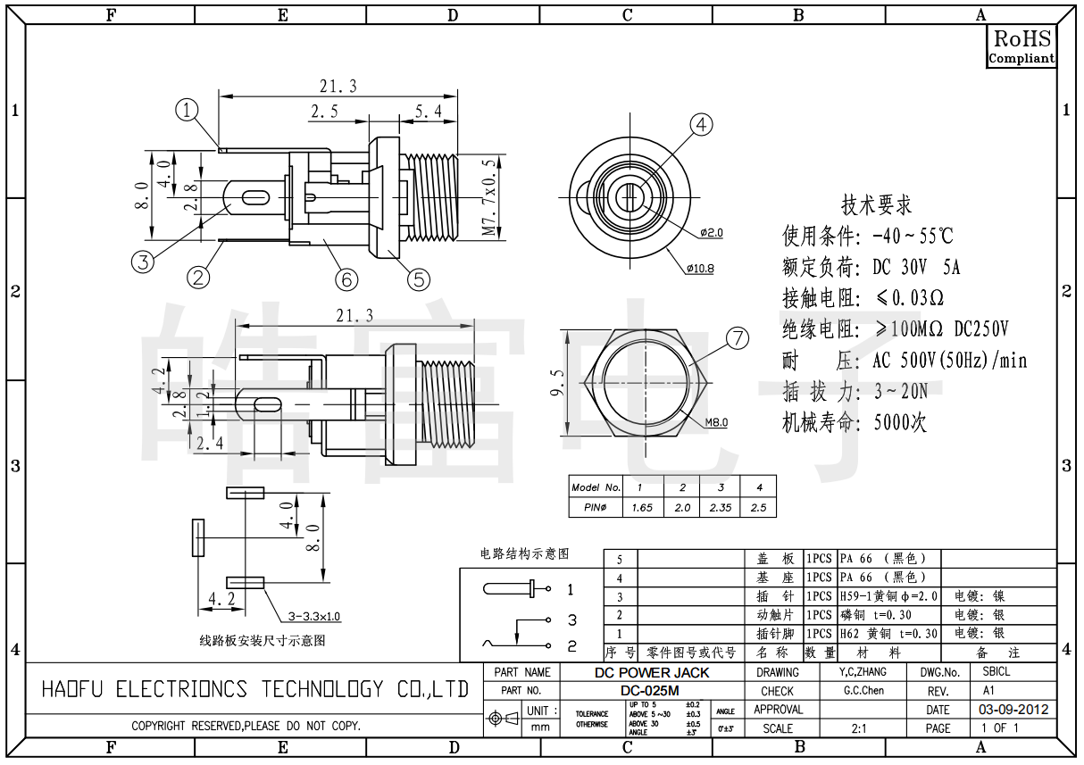 Your position  Home -> Products  ->  DC socket  ->  DC-025M-2.5, 5.7 High