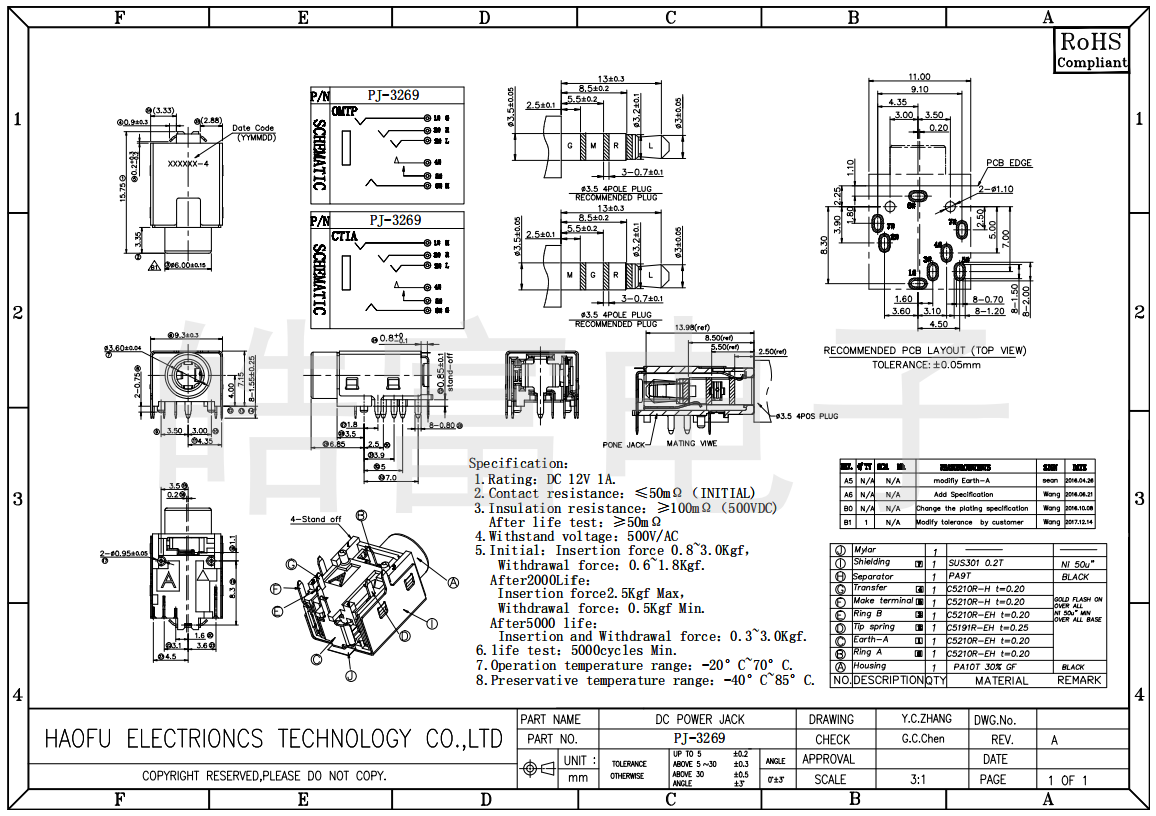 Your position  Home -> Products  ->  DC socket  ->  PJ-D3047A H3.5 2.1 foot length
